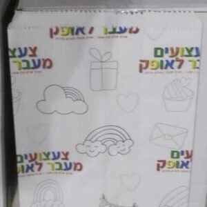 מודפס בשלל צבעים ודוגמאות צבעוניות לילדים, בלונים/סמיילי ועוד. מעטפות נייר מודפסות לאריזת צעצועים בשלל גדלים: